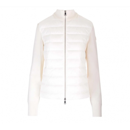 • [몽클레어] 9B00025 M1131 030 로고 패치 니트 다운 믹스 집업 아이보리 여성 자켓
